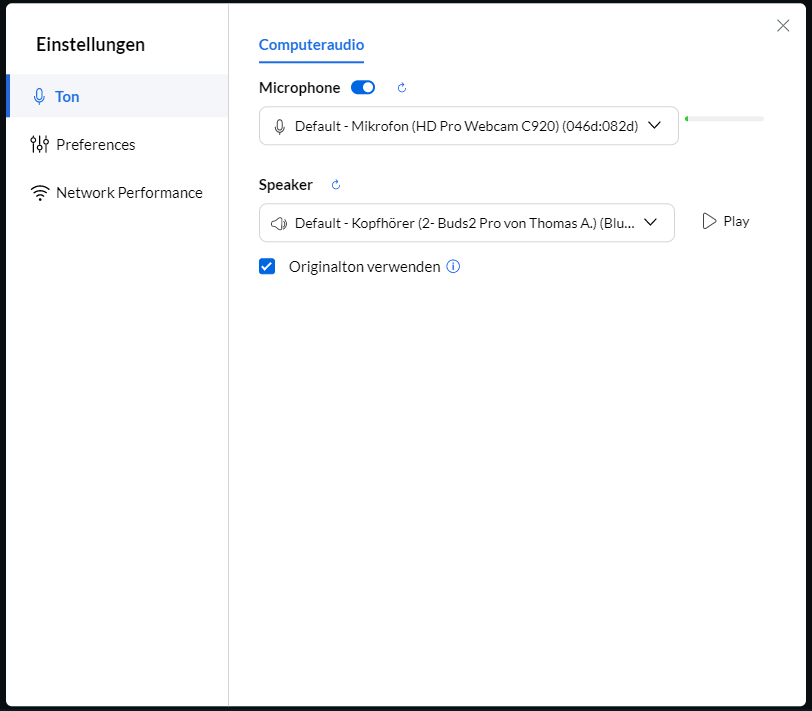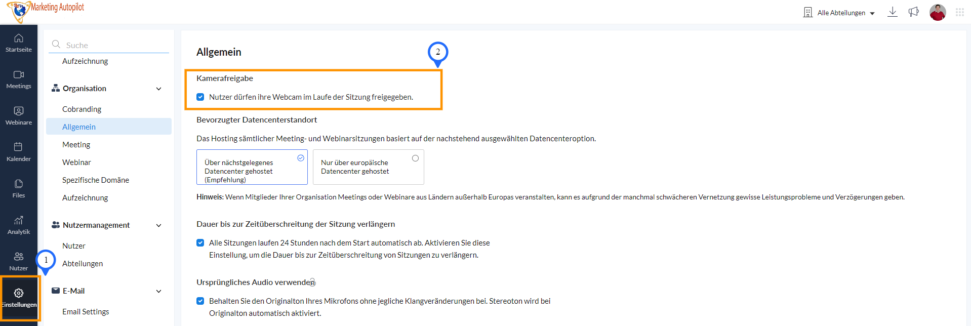 Falls dieser Punkt nicht eingeschaltet ist, kannst du im laufenden Meeting einfach keine Kamera auswählen.
