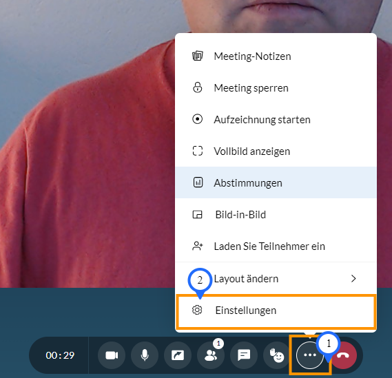 So kann in einem laufenden Meeting diese Einstellung angepasst werden: